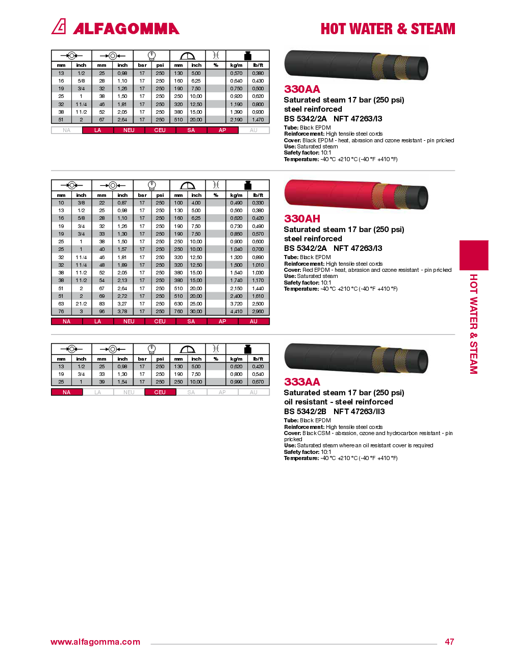 E-Catalog > Hydraulic Hoses ALFAGOMMA > STEAM HOSE AH-RED/AH-BLACK : EPDM T330AH / T330AA - 17 BAR OR 250 PSI