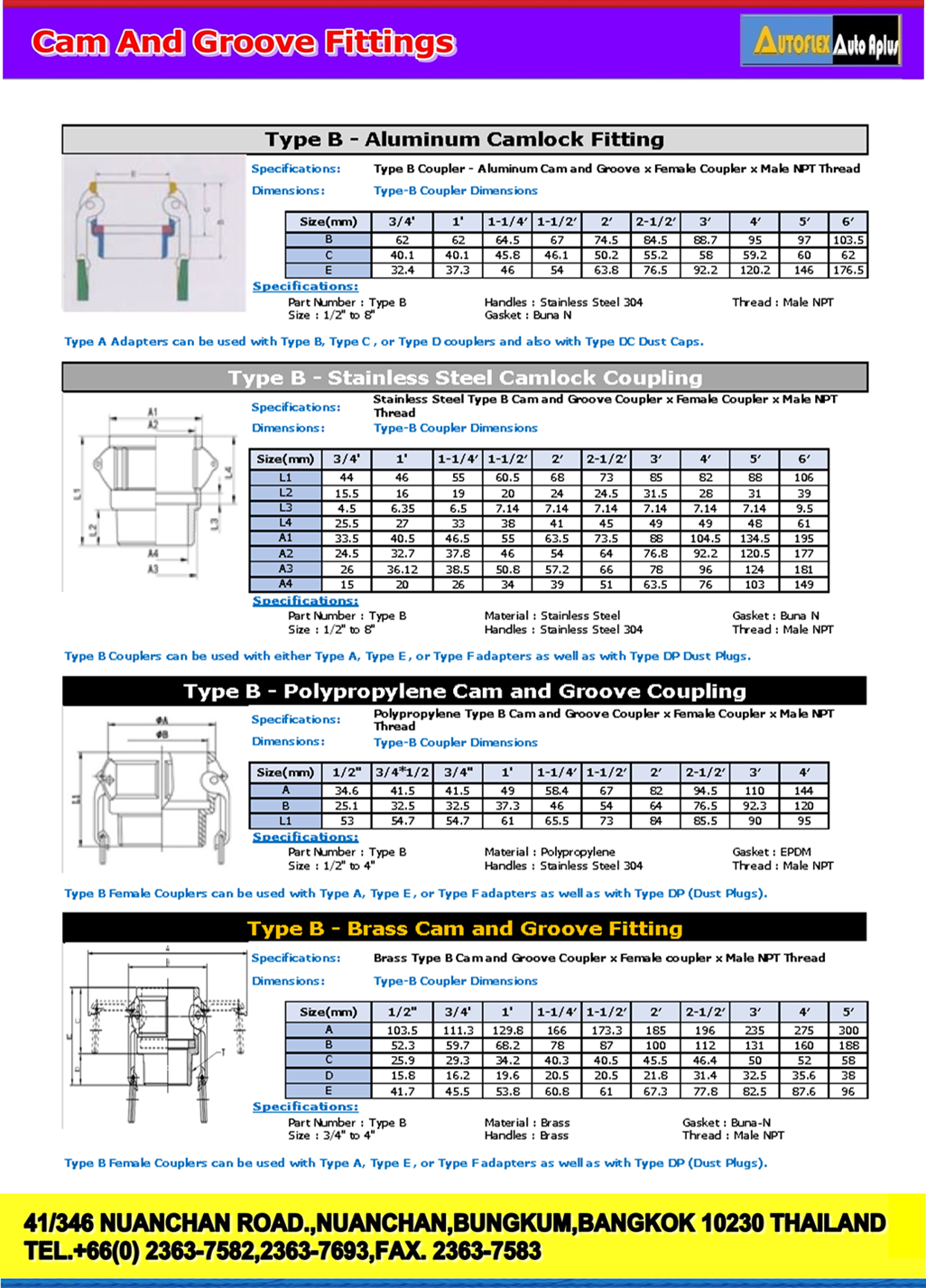 E-Catalog > Camlock Coupling & Groove And Pin Lug Coupling > CAMLOCK AND GROOVE FITTINGS TYPE B-MAT. POLYPROPYLENE