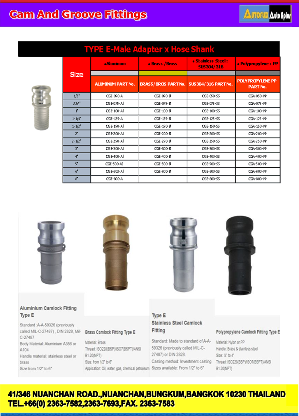 Type E – Camlocks อลูมิเนียม