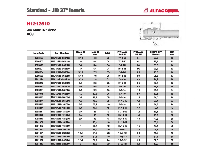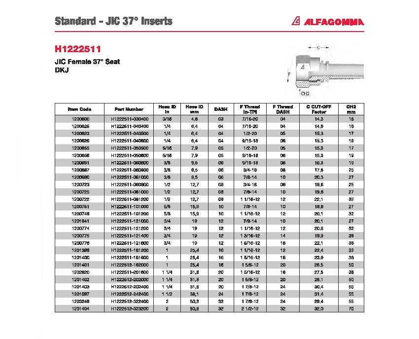 Fitting JIS 37° Inserts Male & Female:Hydraulic Fitting Hose:ALFAGOMMA Category :