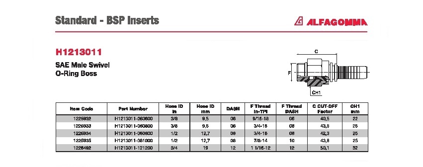 E-Catalog > Hydraulic Hose fittings and adapters:ALFAGOMMA > Fitting SAE Male Swivel O-Ring Boss:Hydraulic Fitting Hose:ALFAGOMMA