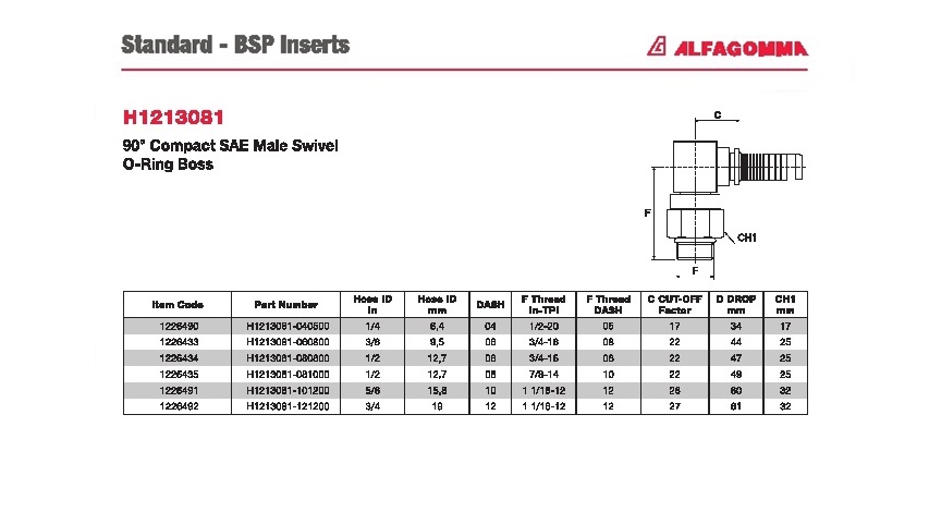 Fitting 90º Compact SAE Male Swivel O-Ring Boss:Hydraulic Fitting Hose:ALFAGOMMA Category :