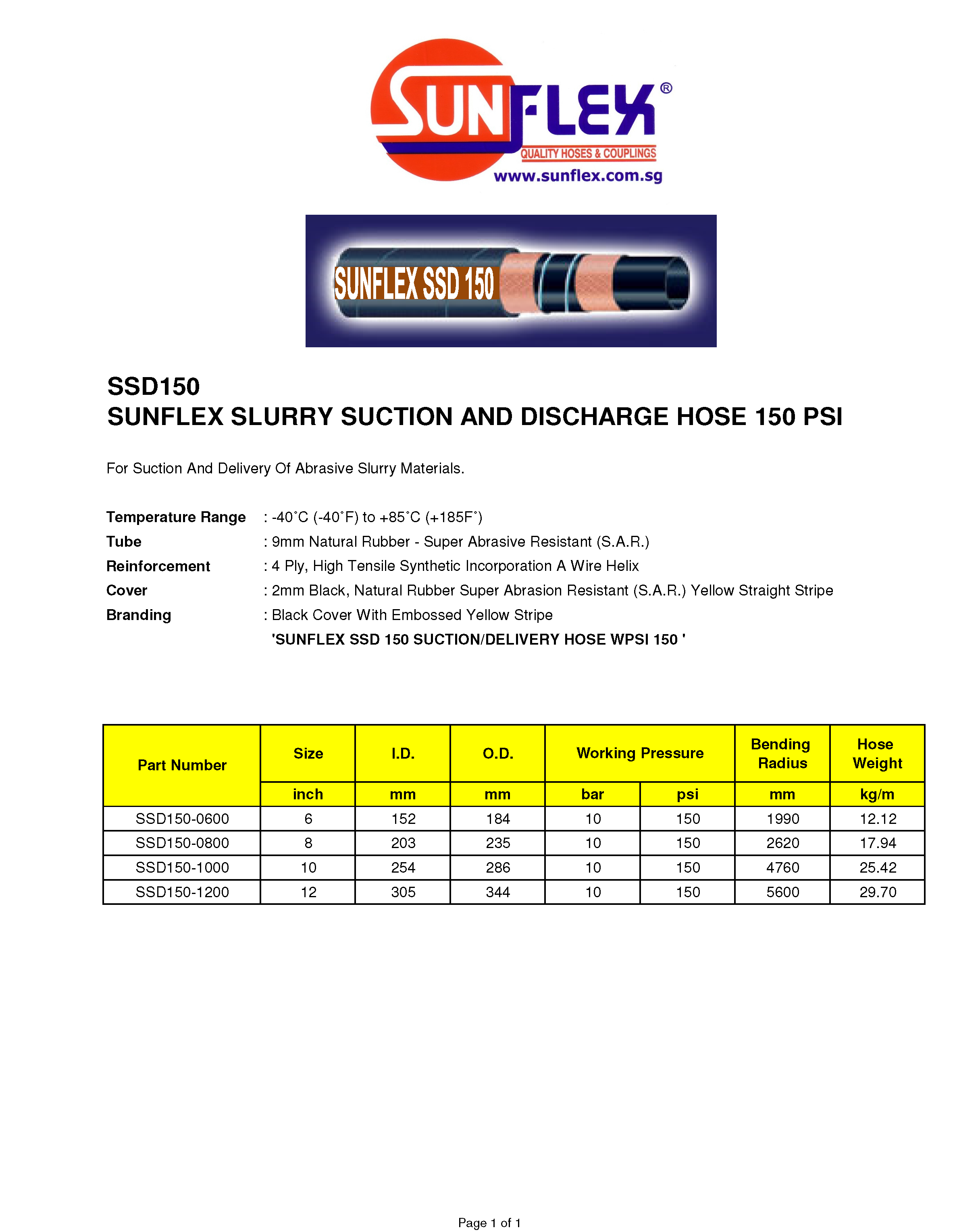 'SUNFLEX SSD 150 SUCTION/DELIVERY HOSE WPSI 150 '
