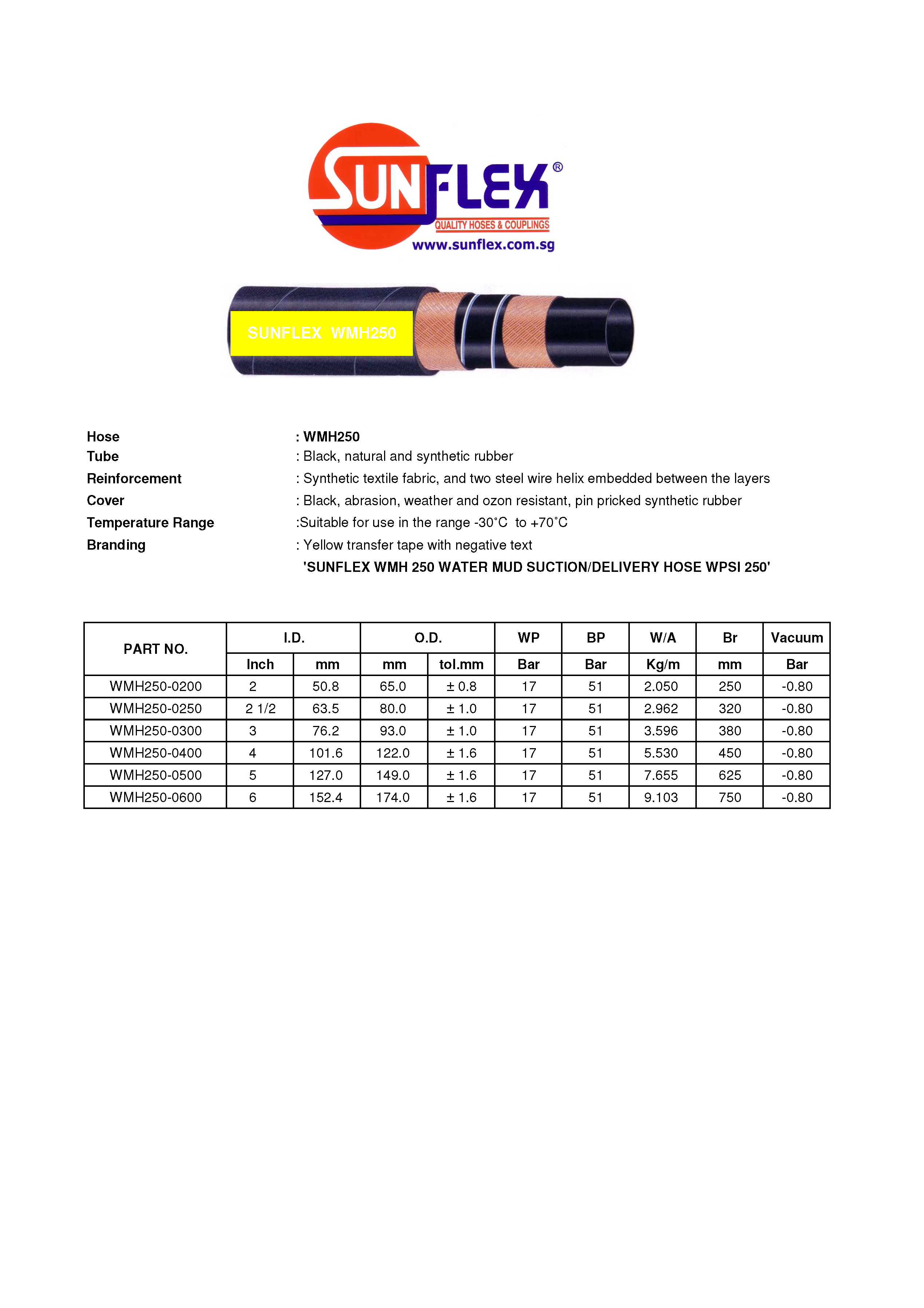 'SUNFLEX WMH 250 WATER MUD SUCTION/DELIVERY HOSE WPSI 250'