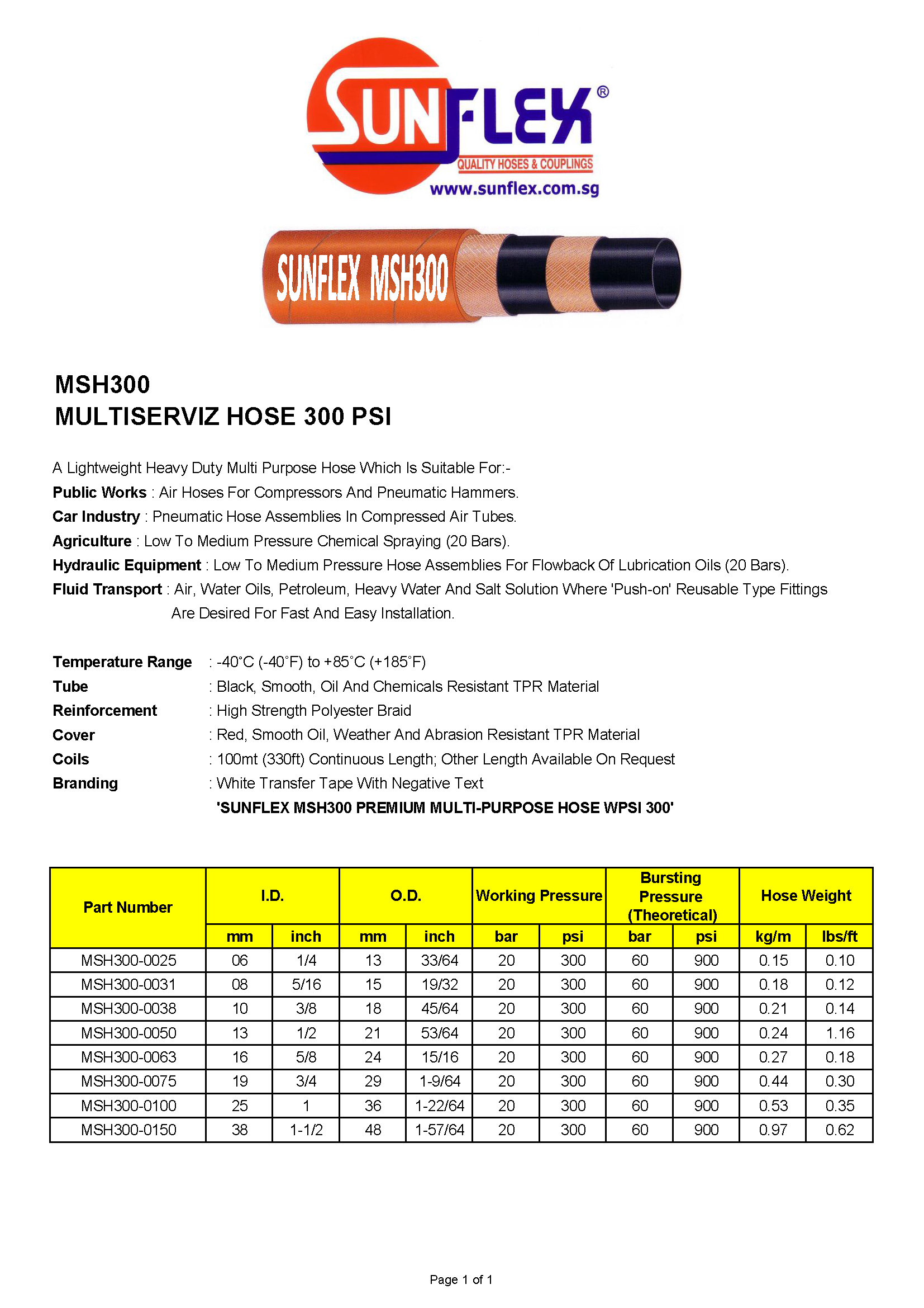 'SUNFLEX MSH300 PREMIUM MULTI-PURPOSE HOSE WPSI 300'