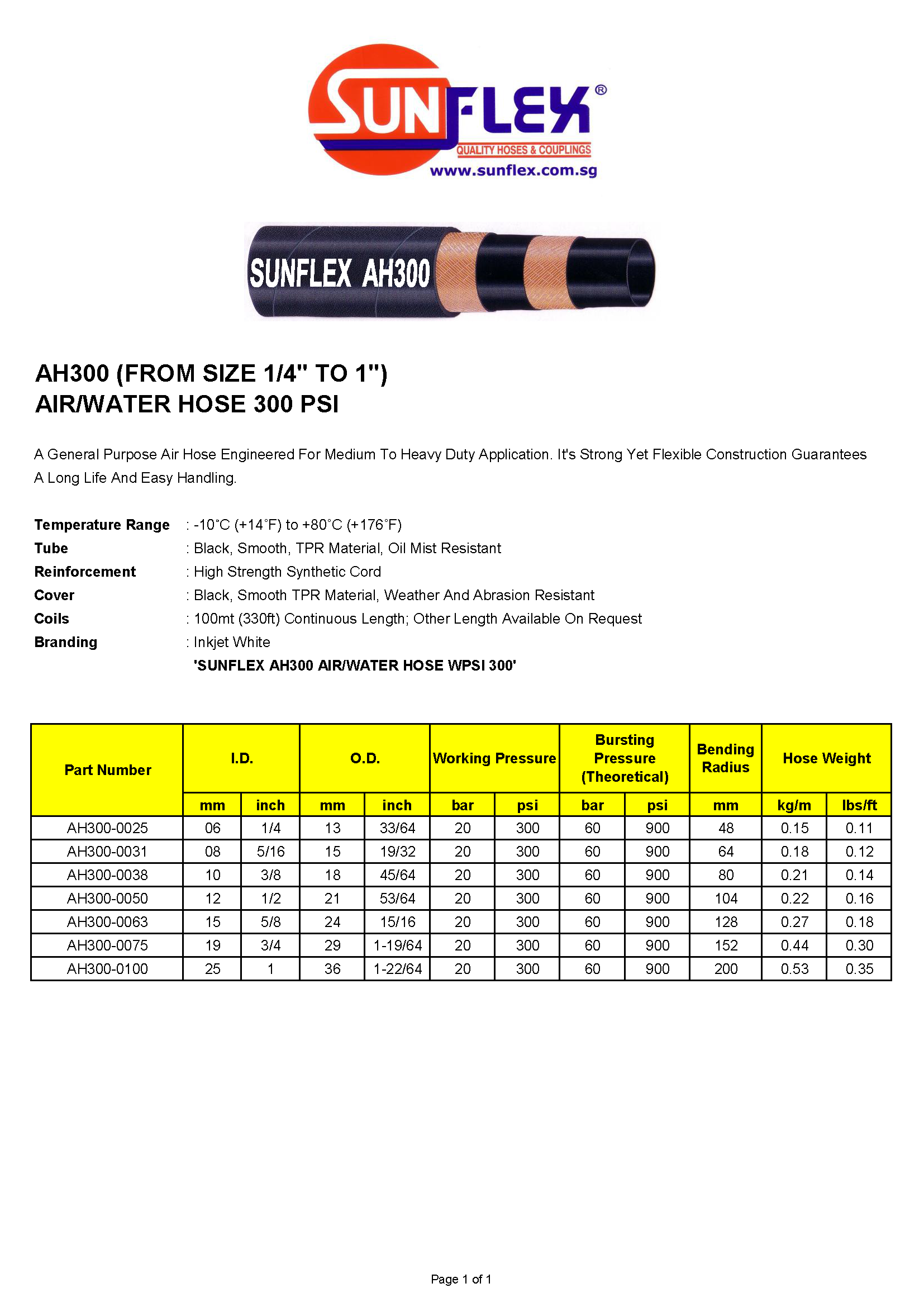 'SUNFLEX AH300 AIR/WATER HOSE WPSI 300'