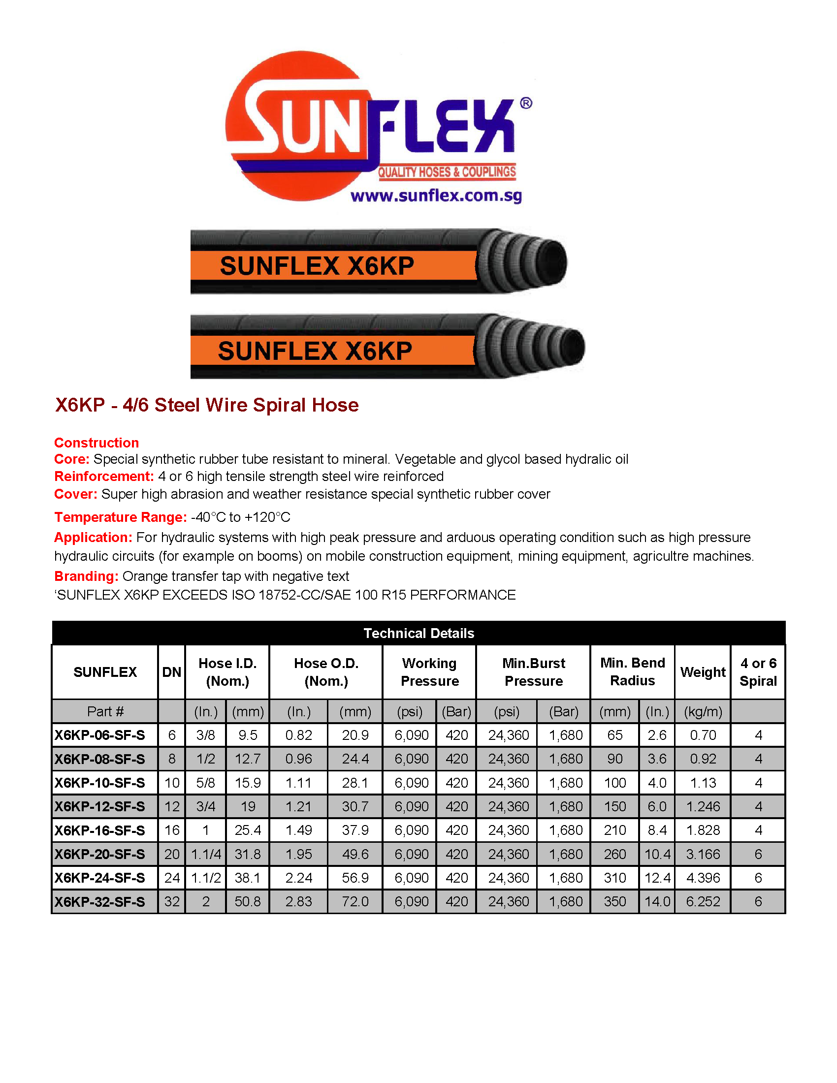 ‘SUNFLEX X6KP EXCEEDS ISO 18752-CC/SAE 100 R15 PERFORMANCE