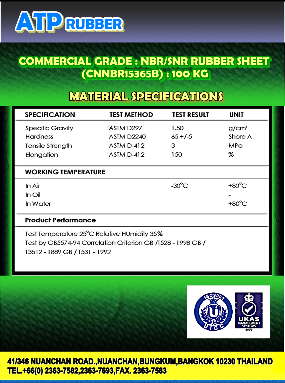 • ชื่อผลิตภัณฑ์ : แผ่นยาง NBR/SBR
