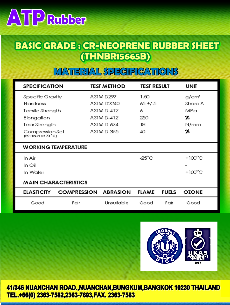 • ต้านทานต่อโอโซน : Good to Excellent • ต้านทานการเกิดออกซิเดชัน : Good to Excellent