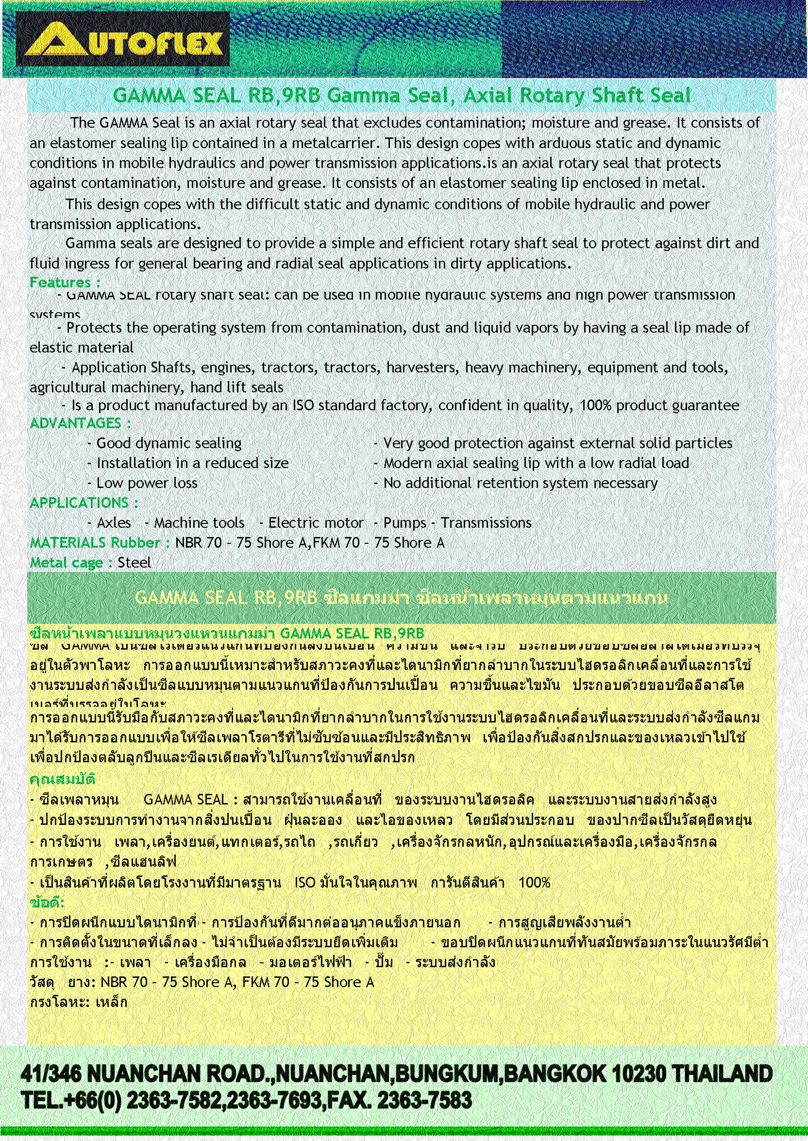 - ซีลเพลาหมุน GAMMA SEAL : สามารถใช้งานเคลื่อนที่ ของระบบงานไฮดรอลิค และระบบงานสายส่งกำลังสูง