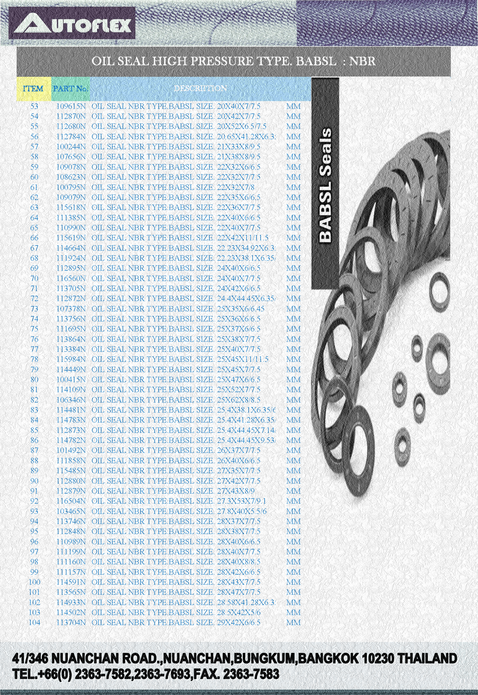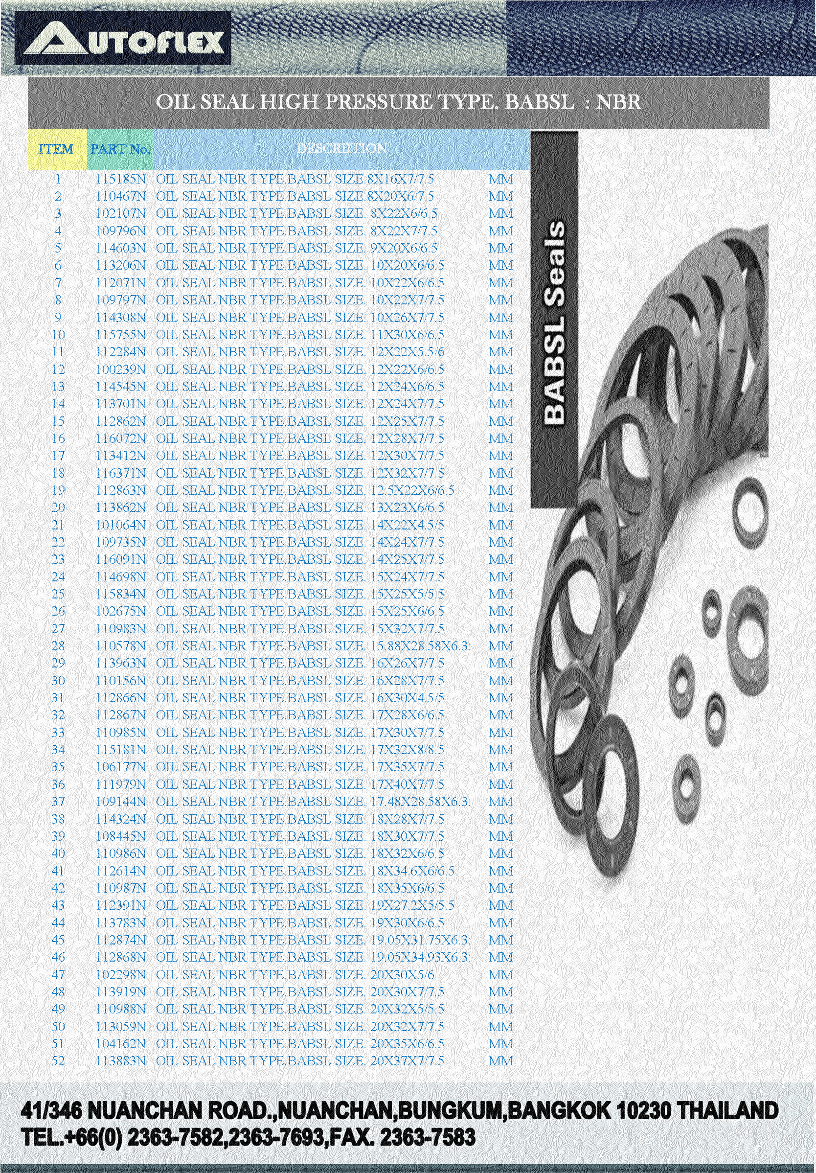 E-Catalog > อาหาร, ผลิตภัณฑ์ > BABSL OIL Seals NBR
